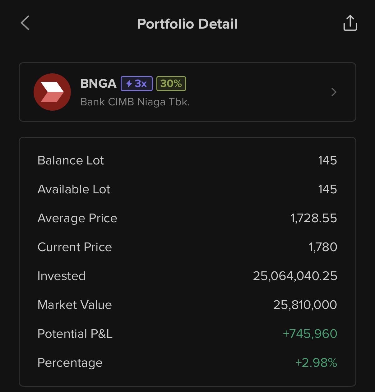 Saya akan bikin dokumentasi tentang saham $BNGA di porto saya, tiap saya beli di barga brapapun akan saya update.