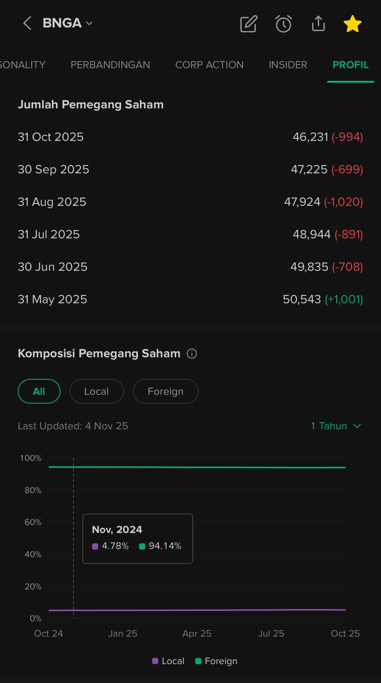 Biasa teorinya semakin banyak retail keluar kedepannya semakin gampang terbang. Local sisa 4 persenan. Ditampung asing terus barangnya. Publik cm 7.5 persen. Ytta.. dividen jg 8-9persen minimal. Hold bt long term bnga aman cuy. Low risk gain mayan. Disclamer