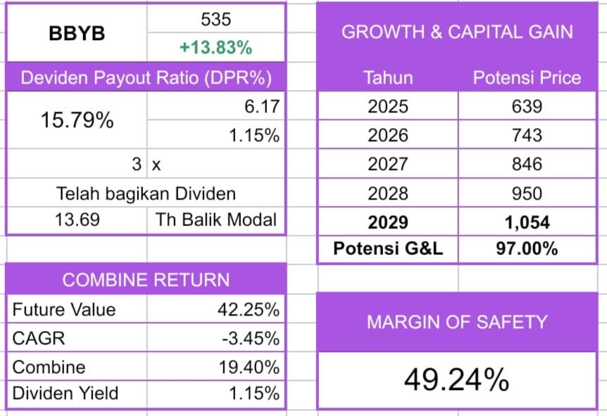 Secara historikal BNGA mulai rutin membagi dividend dari tahun 2018 dan trennya terus meningkat setiap tahun. Kalau dilihat dari performa sementara tahun ini, kayaknya EPS tahun 2025 bisa mencapai 280. Kalau pakai payout ratio tahun lalu, maka perkiraan dividend ada di 160 lah.