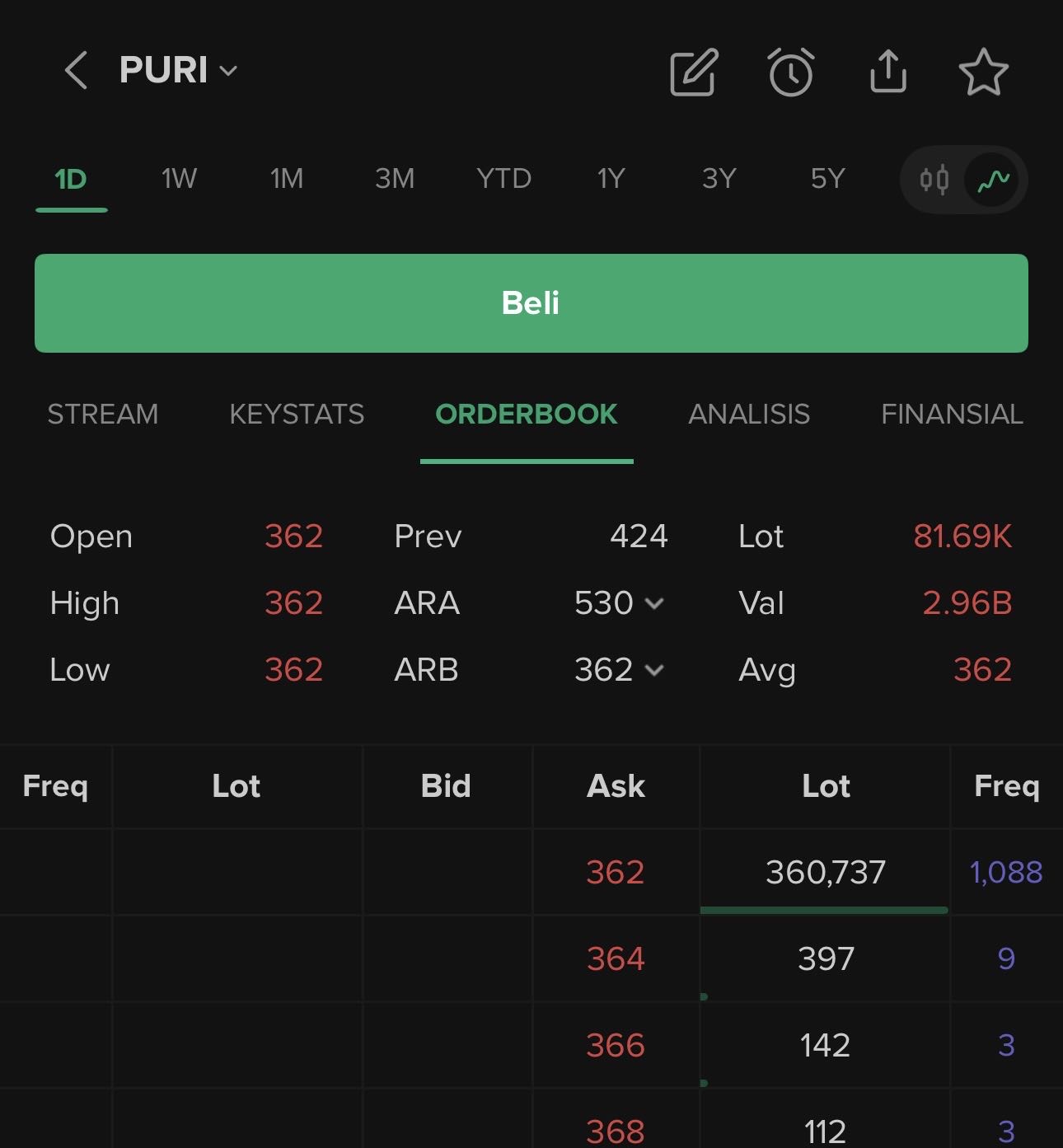 $PURI ini barang dari tadi gini aja ya ,tebal kaya tembok besar china,,dari harga 1200 ke 300 perak juga tetap ampas ngga laku $BNII $IHSG
