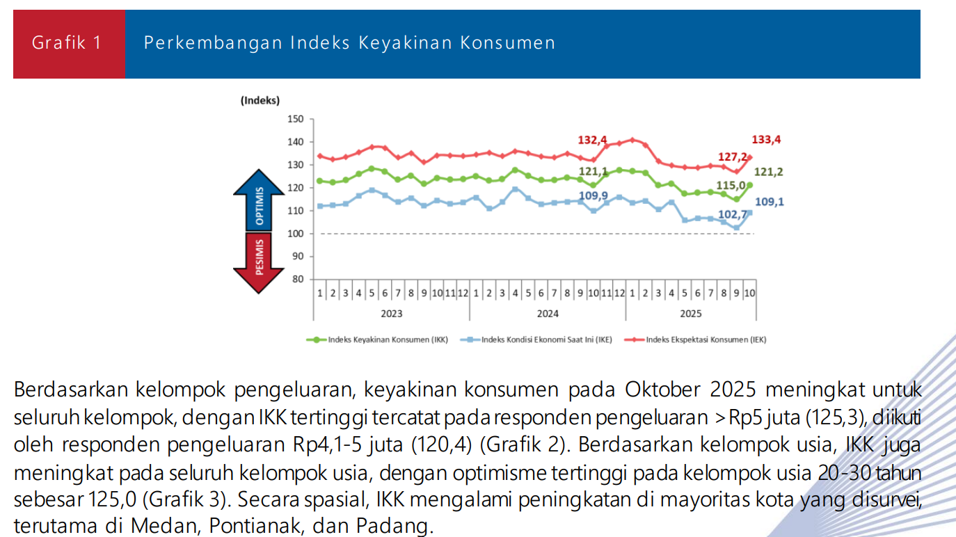 Rilis Indeks Keyakinan Konsumen (IKK) dari Bank Indonesia, Indeks Ekonomi Saat ini (IKE) dan Indeks Ekspektasi Konsumen (IEK) hamdalah telah rebound dari titk terendah.