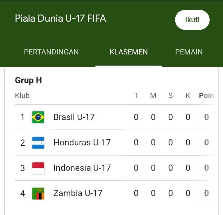 Kalah di 2 pertandingan, poin 0, gol 2 kemasukan 4, selisih gol -2.