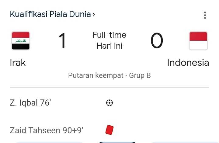 1. Indonesia menang lawan Irak dengan margin gol minimal 2 (Tgl 12/10 dinihari)