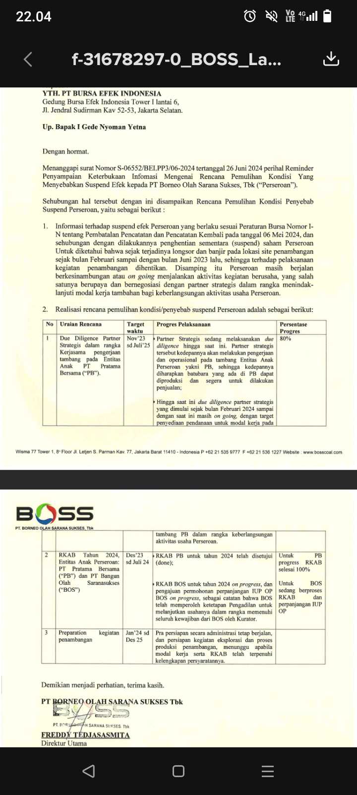 $BOSS Tahun 2026 udah didepan mata, kita lihat emiten ini & para kawanan mafianya bisa bertanggung jawab gak, akan mulai aktivitas penambangan infonya sebagaimana lampiran di Juli 2024. Bursa negeri konoha masih terus melindungi mafia atau ada gebrakan sesuai dengan instruksi Kemenkeu ☕🤔🤔🤔