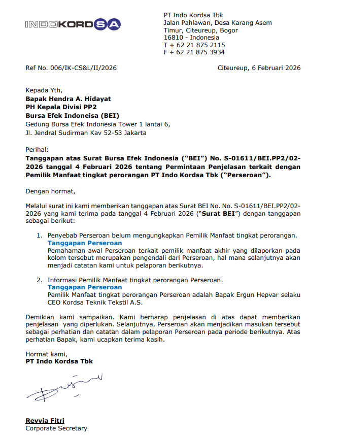 Kepemilikan saham BRAM di PT Indo Kordsa Teijin meningkat pada tahun 2008 menjadi 99,90% dengan membeli saham yang dimiliki oleh Teijin Fibers Limited. Sehingga pada tahun 2009, PT Indo Kordsa Teijin berganti nama menjadi PT Indo Kordsa Polyester (IKP). PT Indo Kordsa Polyester (IKP) kemudian bergabung dengan BRAM efektif 1 Januari 2023 berdasarkan keputusan RUPS Luar Biasa untuk tahun buku 2021 pada 19 Desember 2022.