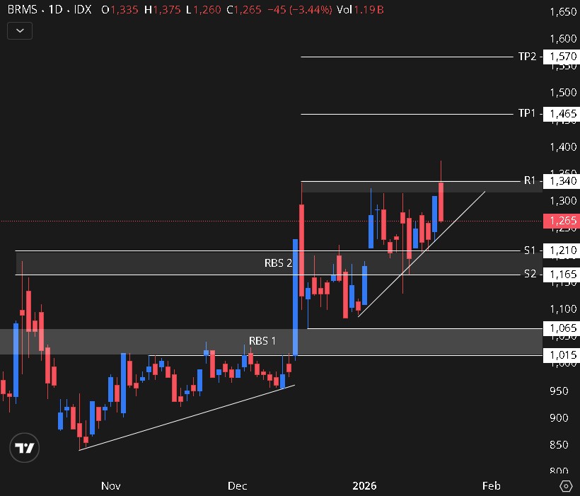 • Harga belum rusak struktur, masih di atas base breakout.