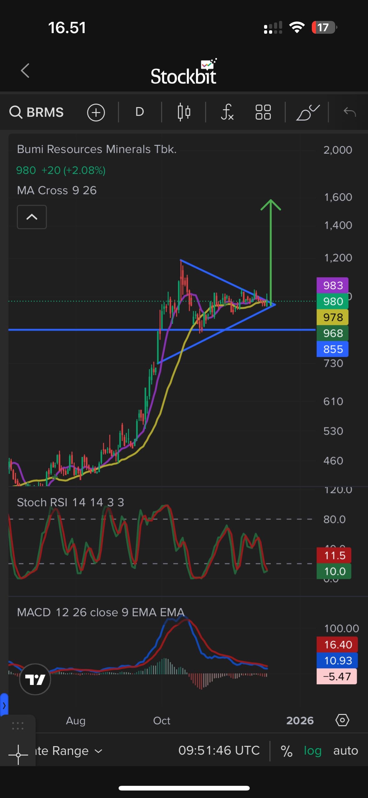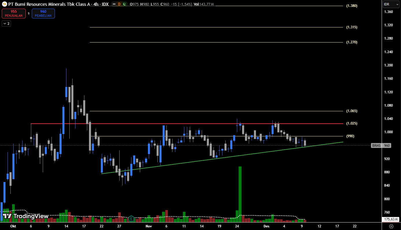 6. $BRMS β uptrend, semua MA mendukung, price% hari ini kecil β ruang gerak besok masih menarik.