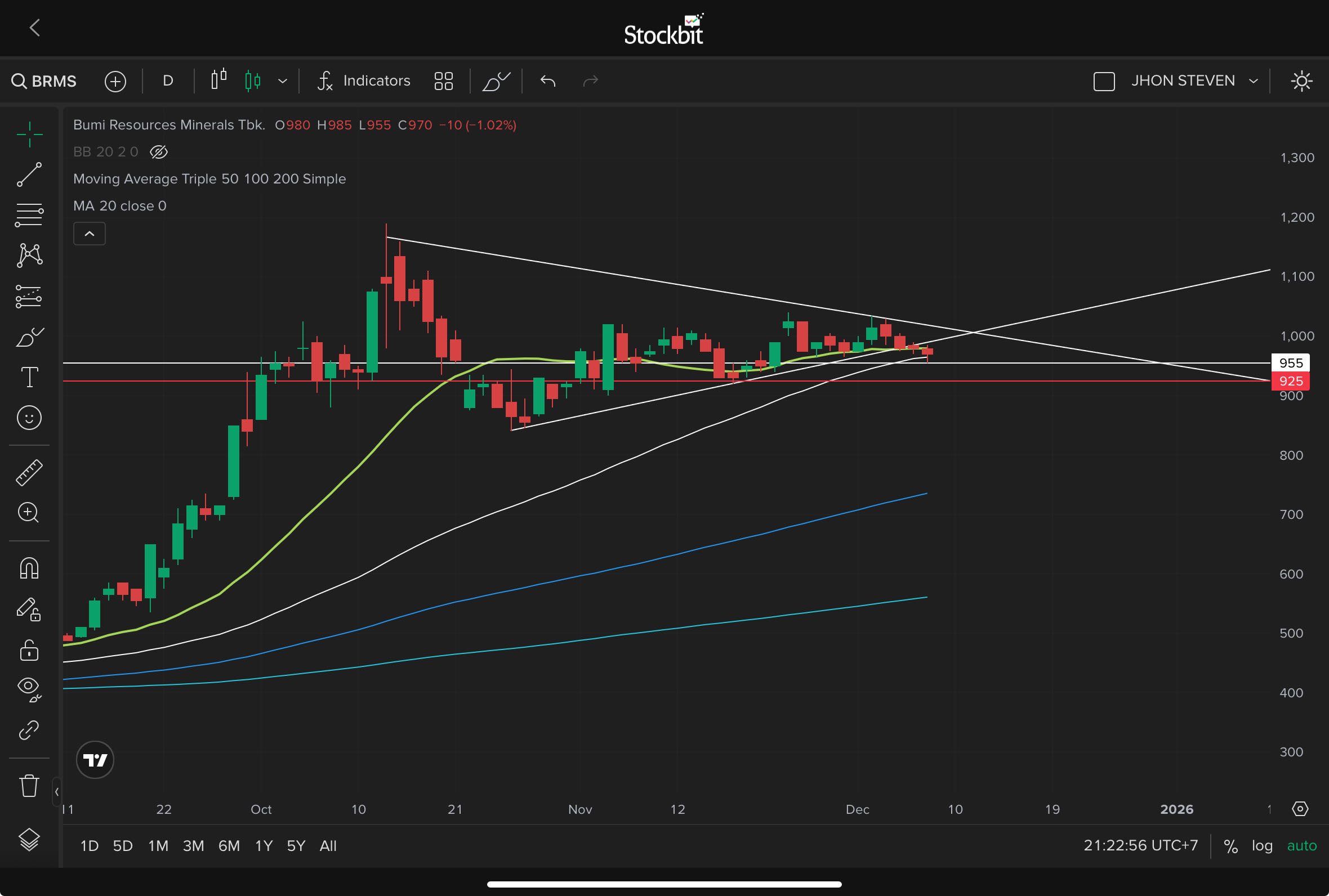 $BRMS : wait & see sepertinya ga kuat naik ,sdh dibawah Garis MA20.hari ini sempat sentuh Suport 955. Suport berikutnya 925. Kalau jebol wasalam