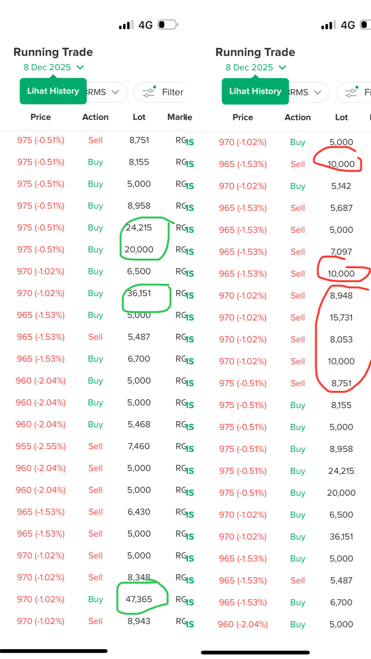 - tapi memutuskan untuk wait and see karena ada lot lot besar yg buy, tapi ada juga yang sell dgn lot besar