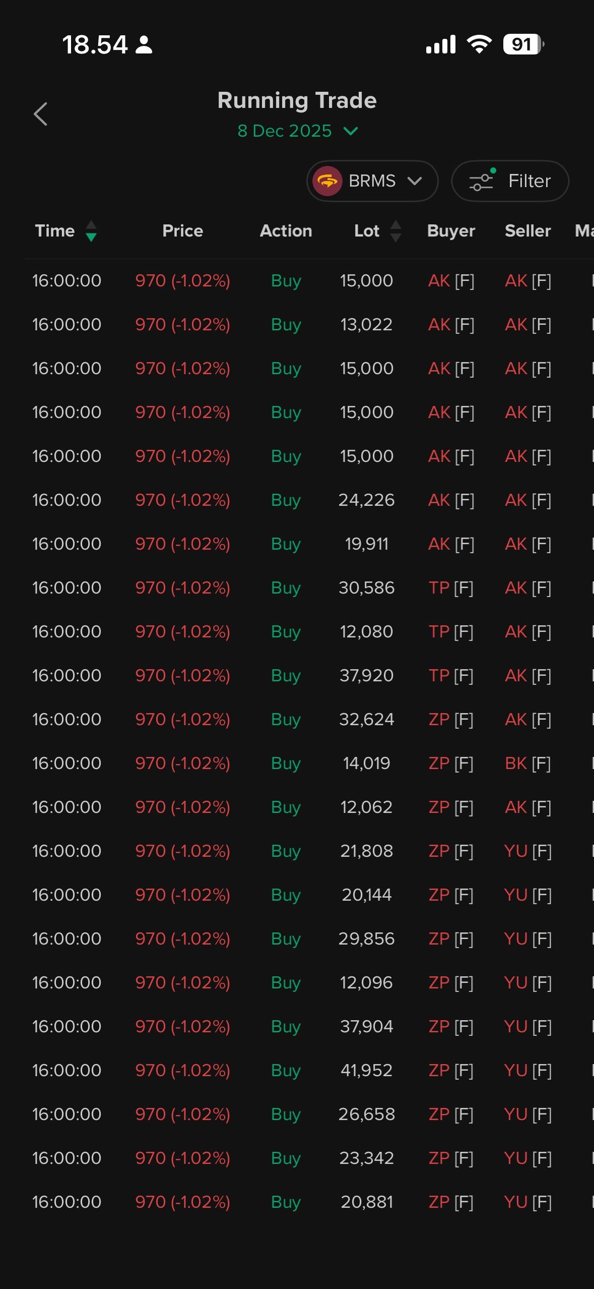 @dimassm918 ada, $CBRE tgl 4 Des kemarin titik belok naik itu. $BRMS asing pegang posisi, masih lanjut 2026. $PSAB mulai ramai lagi, harga emas masih bullish.