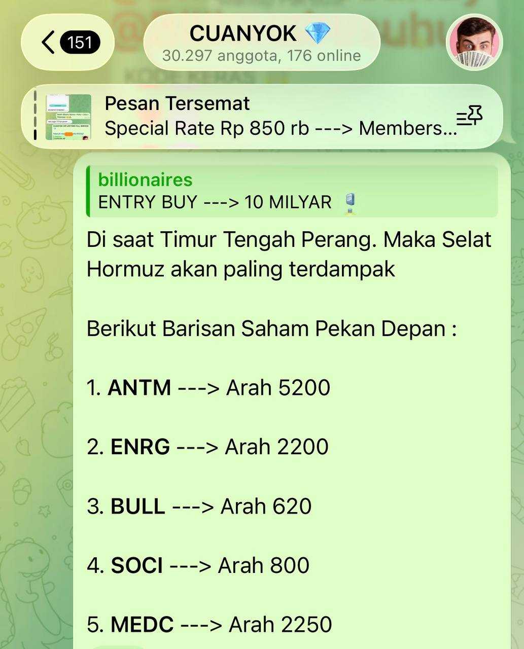 Harga 970 bukan zona terbaik untuk serok maksimal.