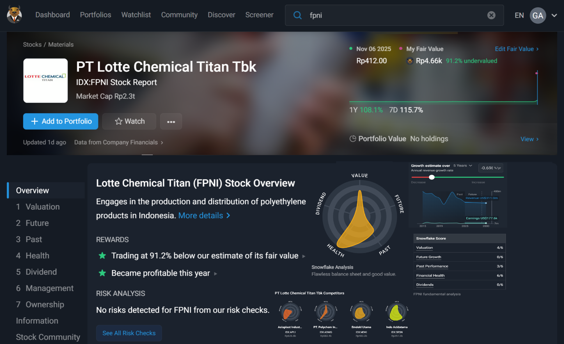 @muhrizky1117 saya punya opini lain yang agak panjang, oom, $FPNI itu LK Q3 tahun ini balik jadi untung (ulasan saya di Q3 2025, https://stockbit.com/post/23101799), proyek yang diresmikan pak Jokowi dan finalisasinya diresmikan pak Prabowo, tujuan proyek adalah meningkatkan kapasitas terpasangnya jadi 4 kali lipat, industri ini komandannya dari Korea, disiplin kerjanya 2 jempol. Produknya kurang lebih similar dengan $TPIA.