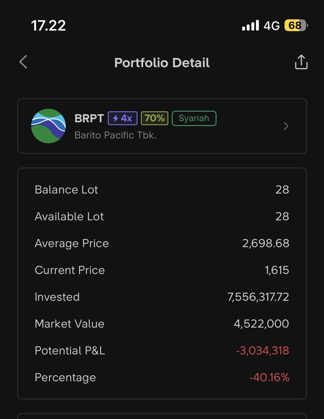 $BRPT banyak emiten lainnya yang abis kena masalah tapi masih bisa naik harganya setelah adanya tekanan jual, ini kenapa emiten yang ga ada masalah malah terus menerus merosot harganya 😔