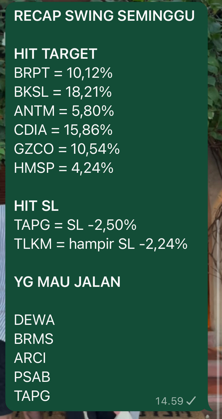 @andykasukma625 market gada yg bener" tau kecuali Tuhan dan Bandar.... sebelumnya jg gw udh hoki feeling gw ni barang mau terbang makanya gw entry lagi di 1250 beli sore pas closing iep... dan bener besoknya ARA tapi syg gw cuma masuk 10 jt padahal pengen 20jt biar berasa cuannya gw jg belum berani untuk skrg tambah muatan... kalem aja syukuri berapa profit yg di kasih karna market akan menghukum orang yg tamak 😂