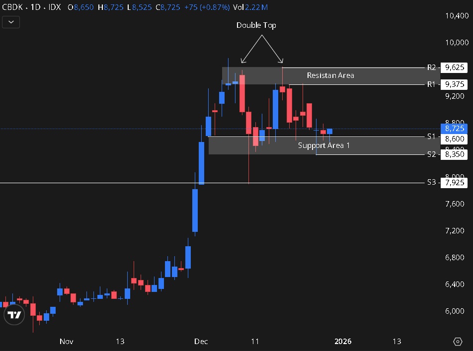 $CBDK apakah support ini bisa kuat untuk menahan pattern double top ?