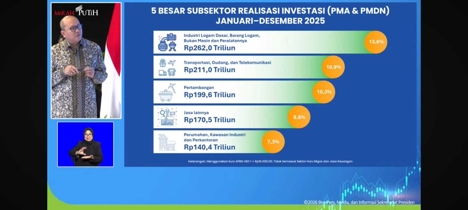 5 besar subsektor realisasi investasi Indonesia sepanjang tahun 2025