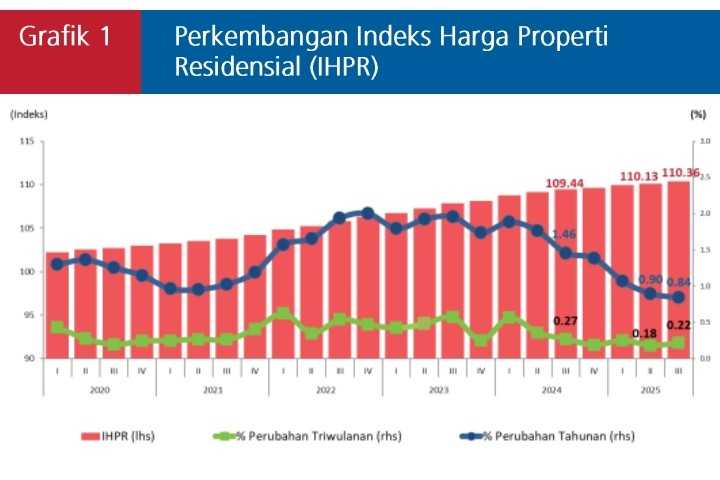 Sementara secara kuartalan IHPR tumbuh +0,22% qtq pada 3Q25, sedikit lebih tinggi dibandingkan 2Q25 yang tumbuh+0,18% qtq.