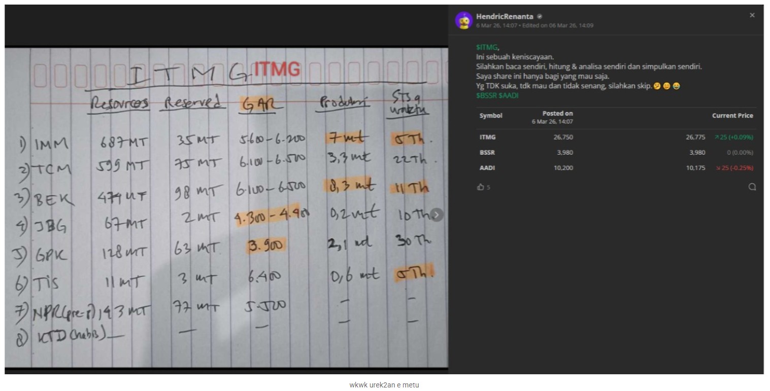 Sekarang giliran ITMG yg nyata berurusan dgn isu sisa cadangan, elo beda ngomongnya, plintat-plintut aja.😂🤣