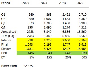 $ITMG dgn eps fy di 2.785, kalo DPR tetap di 65%, maka Dy fy di harga saat ini 22rb, +- 8%π€ Dgn final +- 1.000.