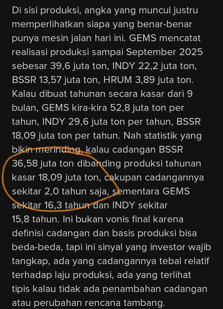 Di atas kertas, secara matematis, di volume produksi saat ini, umur tambang BSSR hanya kalah dari $PTBA saja.π€π€π