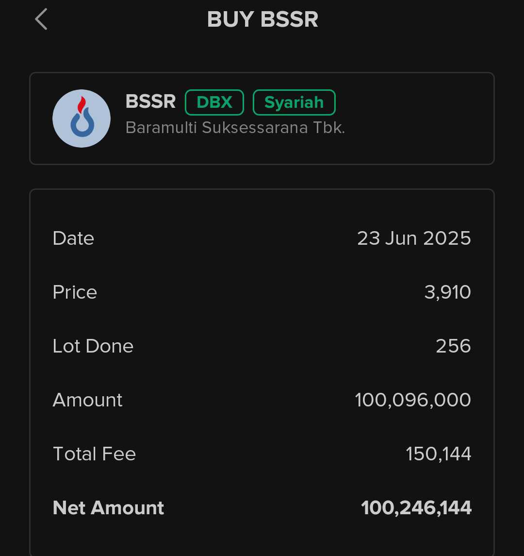 Saya tertarik dgn harapan kamu utk beli $BSSR di harga 3.300 sejak Juni 25.