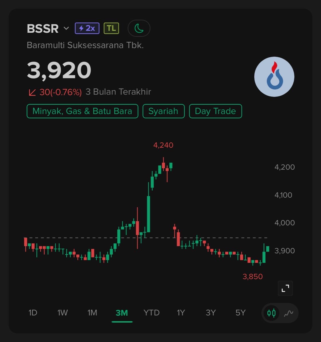 Utk holder $BSSR harga turun itu yg dicari, biar makin byk muatan, makin gede dividen. Gak cocok ya klo utk trading. Harus kembali lagi tujuaan beli bssr utk apa?