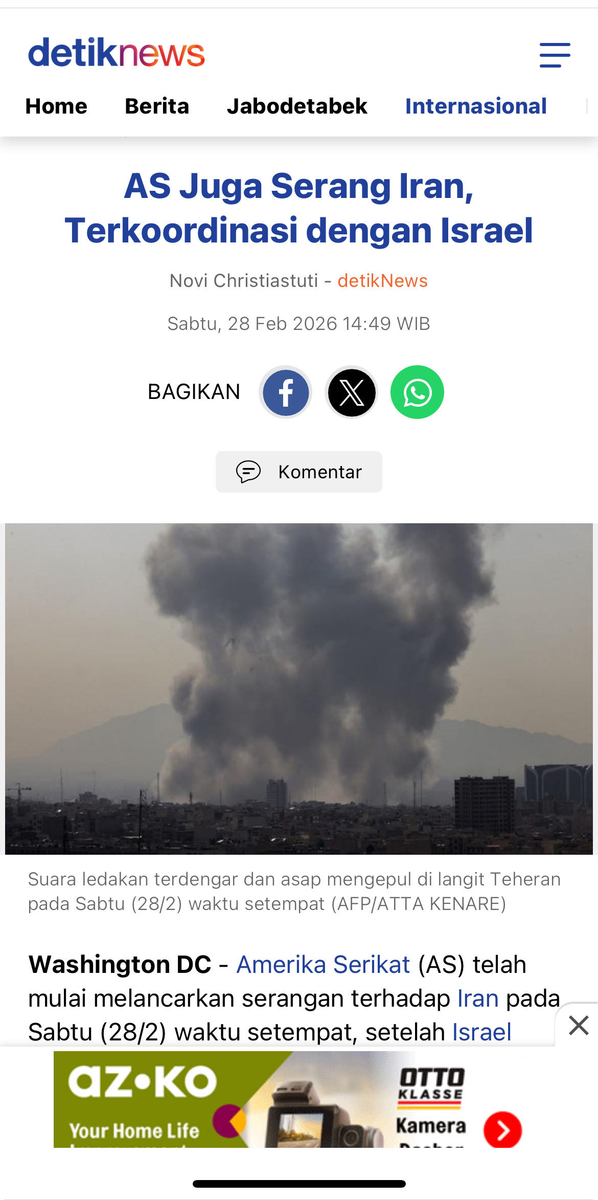 Terkonfirmasi 30 menit lalu, AS - iSrael Vs Iran
