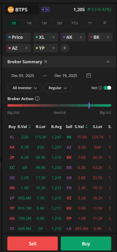 🔼 $BTPS gap up ke 1250 (+65 / +5.49%) dari 1185