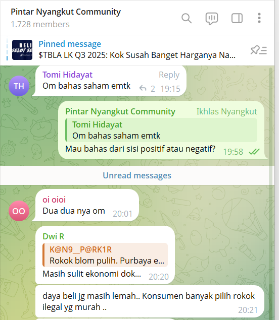Untuk diskusi lebih lanjut bisa lewat External Community Pintar Nyangkut di Telegram dengan mendaftarkan diri ke External Community menggunakan kode: A38138