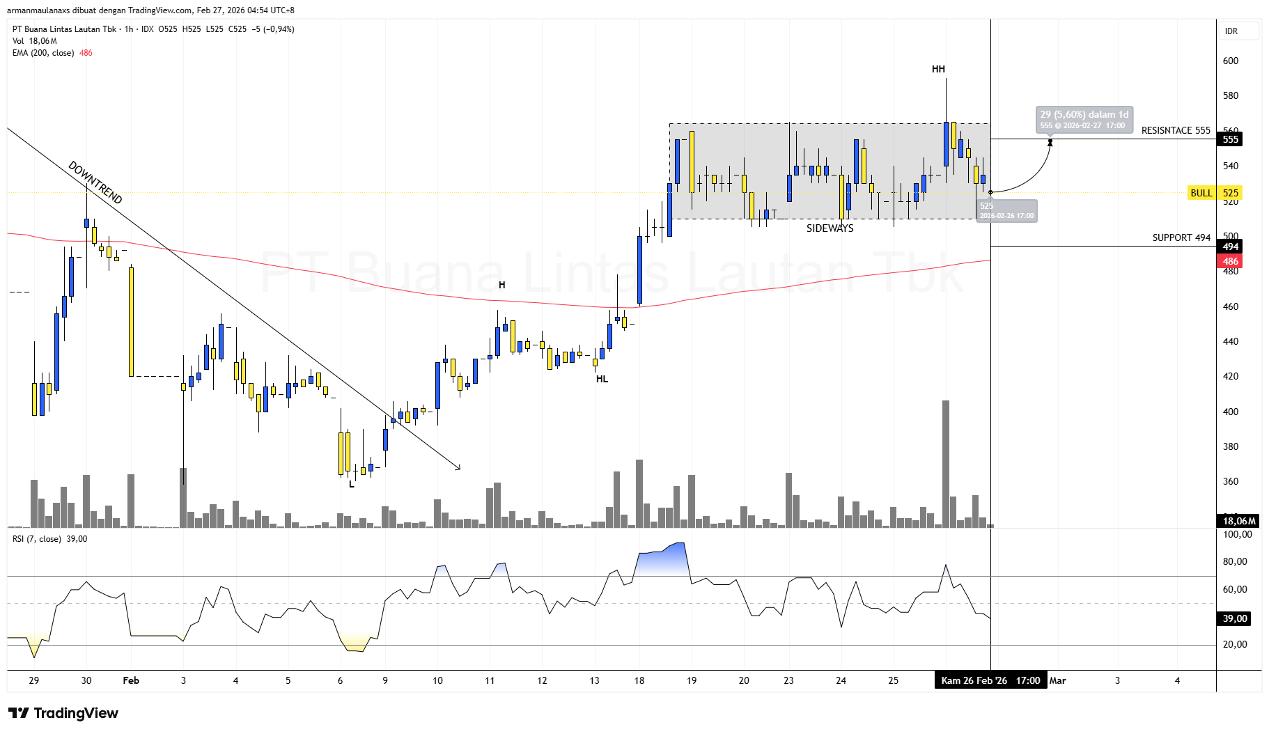 Trading Plan PT Buana Lintas Lautan Tbk ($BULL) ā 1H: