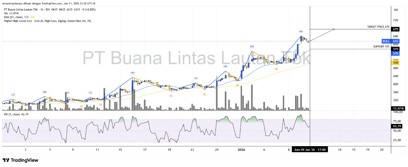 Adapun Target BULL saat ini ada dikisaran last highnya di 620-650an selama BULL Kedepannya bisa terus bertahan diatas Support MA5nya yang ada di 575, lalu BULL ini punya Target jauh untuk kedepannya ada dikisaran angka 780-800.
