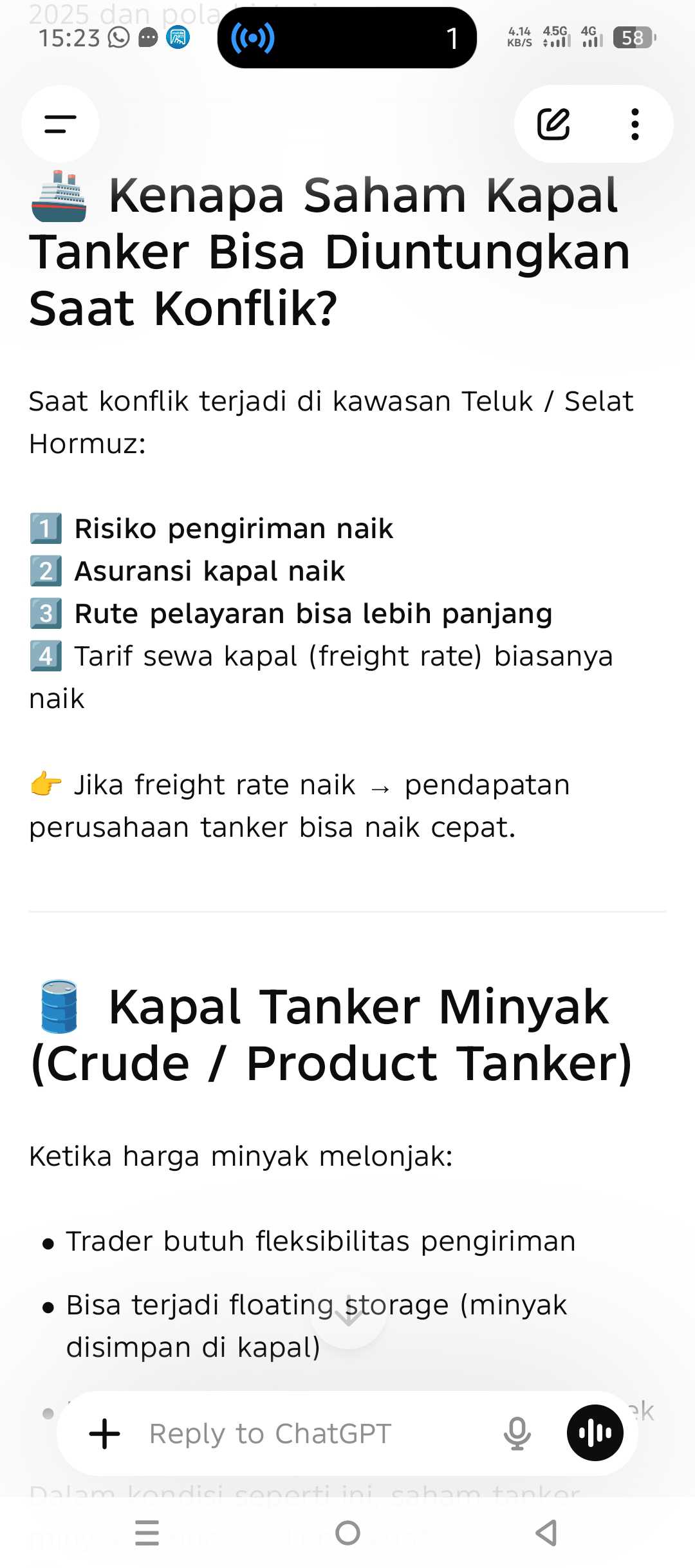 @yusiyulianda TAKUTNYA, kalo saat ini, pihak logistik & delivery justru bad news.. karna kapal harus mutar lebih jauh dari durasi perjalanan biasanya. itu slh 1 dampak war iran... misal $HUMI $BULL $GTSI semoga aja tdk terjadi...