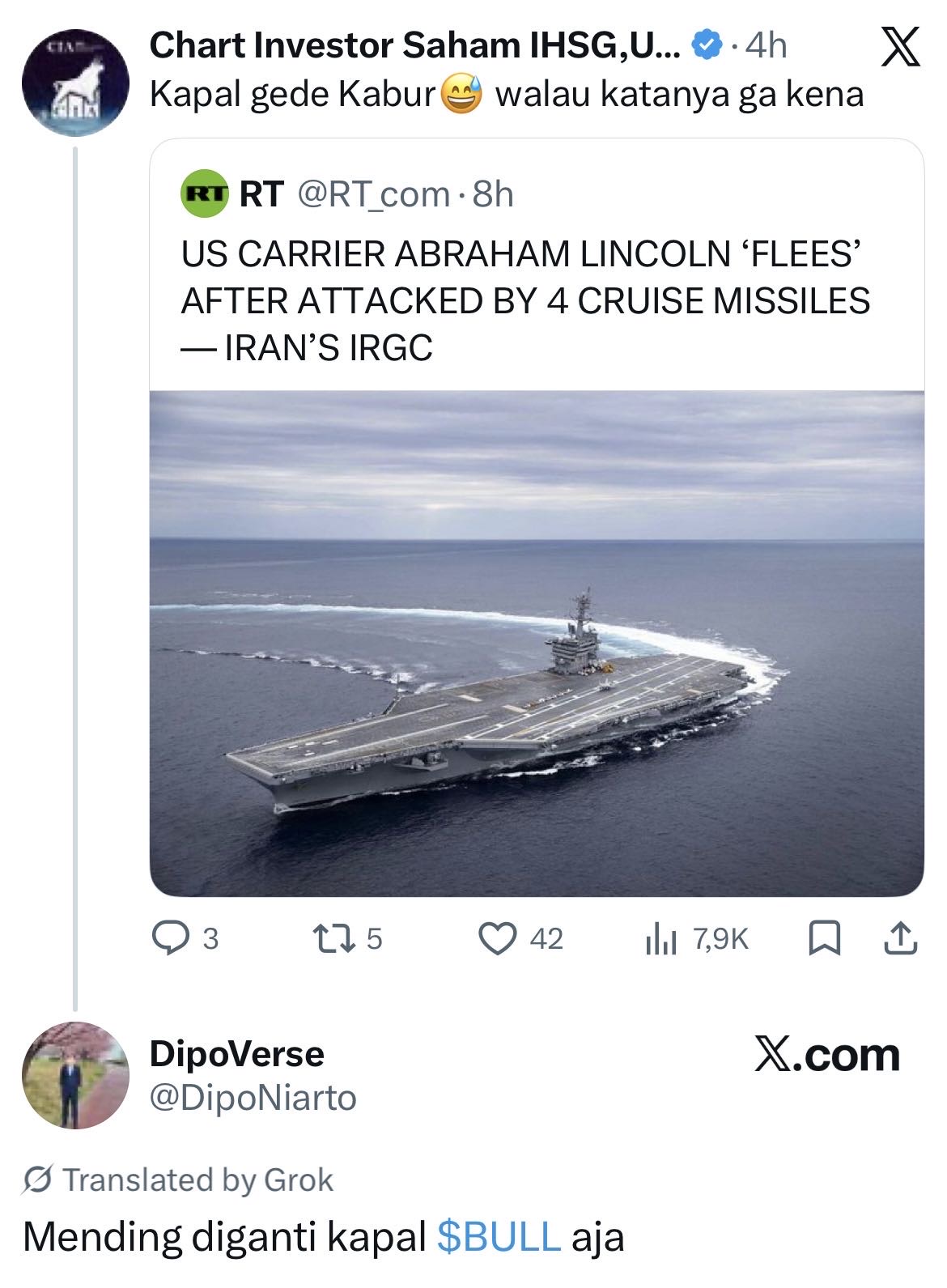 Justru dampak nya ke china jauh lebih besar om, kalok benaran SELAT HORMUZ DI TUTUP.