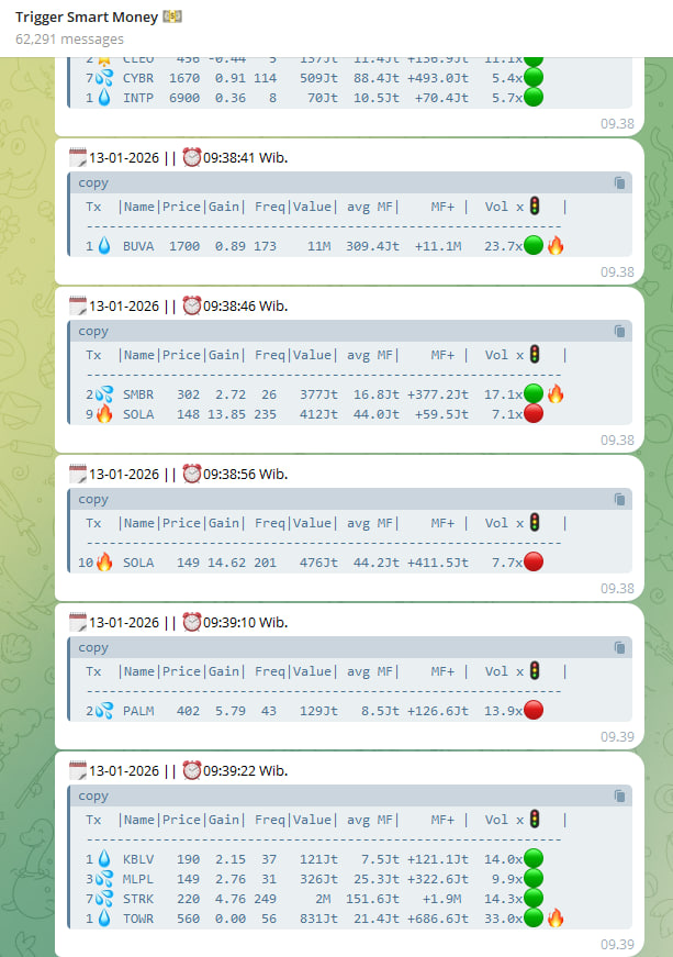 Konsep utama yang harus dipahami adalah bahwa uang besar tidak pernah masuk sekaligus dalam satu detik. Mereka memecah order besar menjadi bagian-bagian kecil agar tidak merusak harga pasar secara drastis. Inilah yang kita sebut sebagai akumulasi senyap. Trigger Smart Money bekerja dengan cara memindai setiap detik transaksi untuk menemukan anomali volume yang 5x lebih besar dari biasanya. Ini adalah sinyal bahwa "tangan kuat" sedang bekerja. Dengan melihat nilai Clean Money, kita bisa memastikan bahwa lonjakan tersebut adalah murni pembelian bersih, bukan sekadar tukar barang (crossing) atau distribusi terselubung.