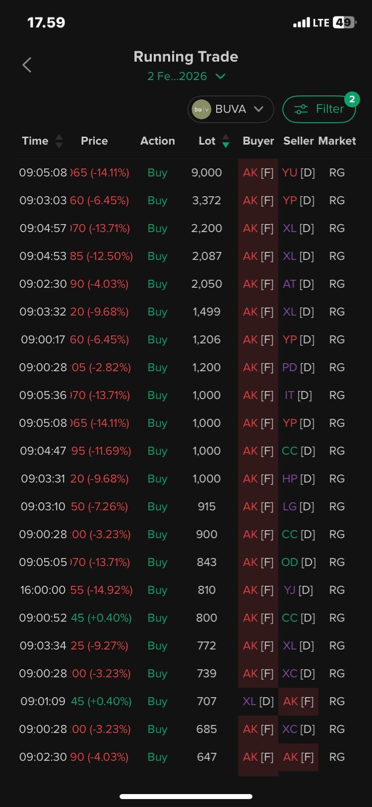 $BUVA kalau melihat ini udh tampak asing mulai akum tipis2. semoga aja besok hijau merona.