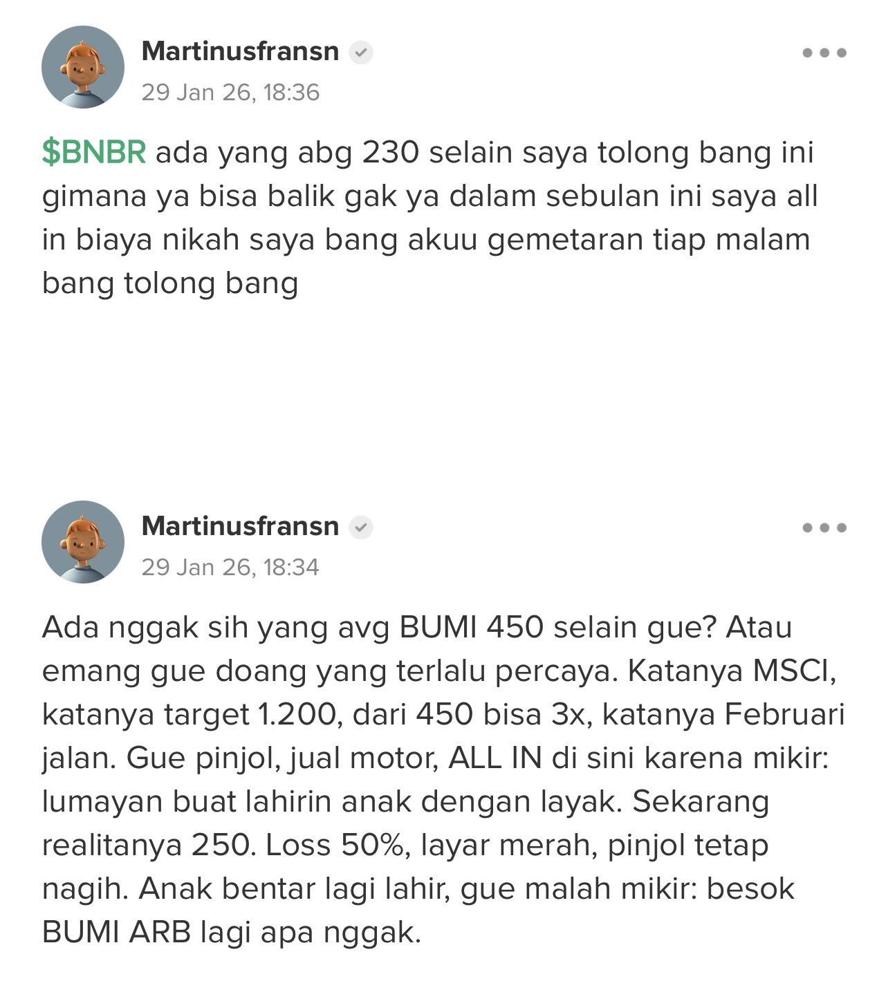 Sudah disuruh tobat saham Gorengan sama Pak Purbaya dari tahun lalu,
