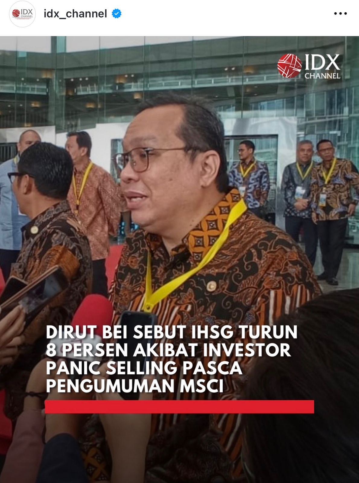Banyak dana besar (Passive Fund) yang wajib mengikuti indeks MSCI. Kalau MSCI membekukan atau memberi sentimen negatif, dana-dana ini otomatis harus keluar atau ditarik dari Indonesia.