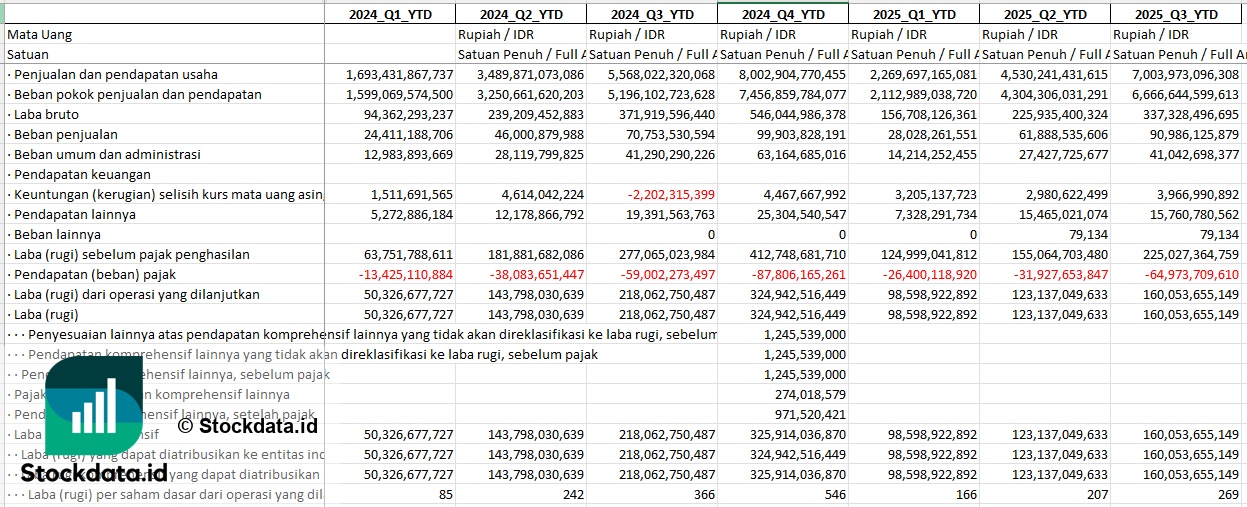 Pendapatan meningkat 19.04% menjadi Rp 2,474 B. Gross Profit Margin di kuartal ini adalah 4.50% dibandingkan dengan 6.39% di periode yang sama tahun lalu. Laba Kotor tercatat turun -16.06% menjadi Rp 111.39 B.