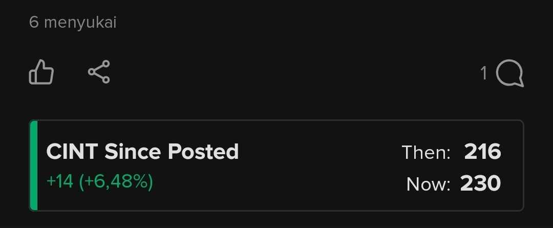 $CINT saham model jarum2 tajam, hati2 jgn asal entry. tunggu koreksi n tp secukupnya Krn peaknya susah ditebak