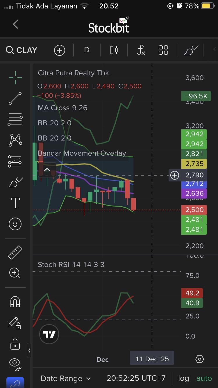 -18%: Chart frozen NO DATA, trapped buyers Rp550-810 panic exit imminent