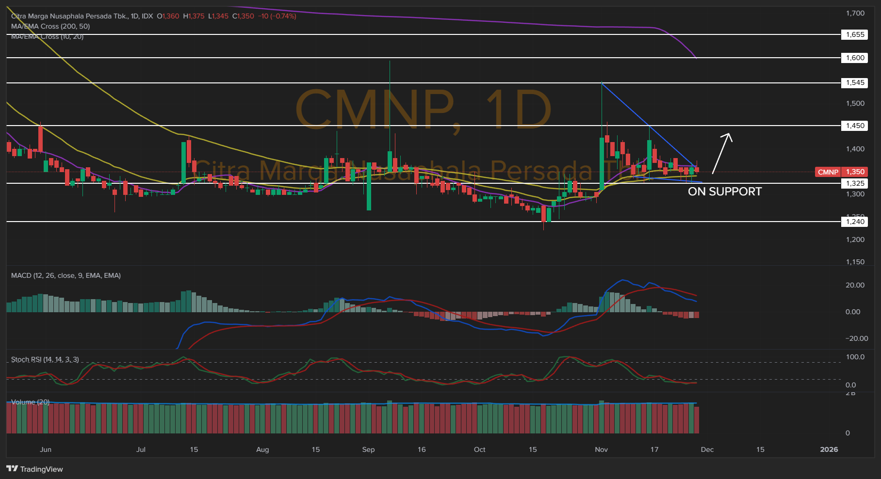 💡 Trading Idea: Entry : 1.340 - 1.350; TP 1: 1.400 - 1.440; TP 2: > 1.600; Stop-Loss: < 1.340. Selama penutupan bertahan di atas 1.340, support tetap terjaga.