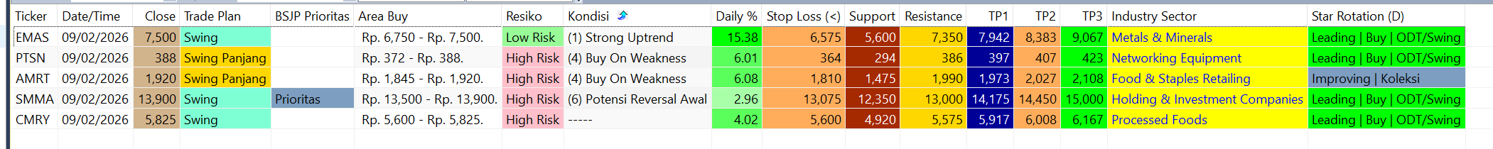- TP2 hanya jika volume & momentum mendukung