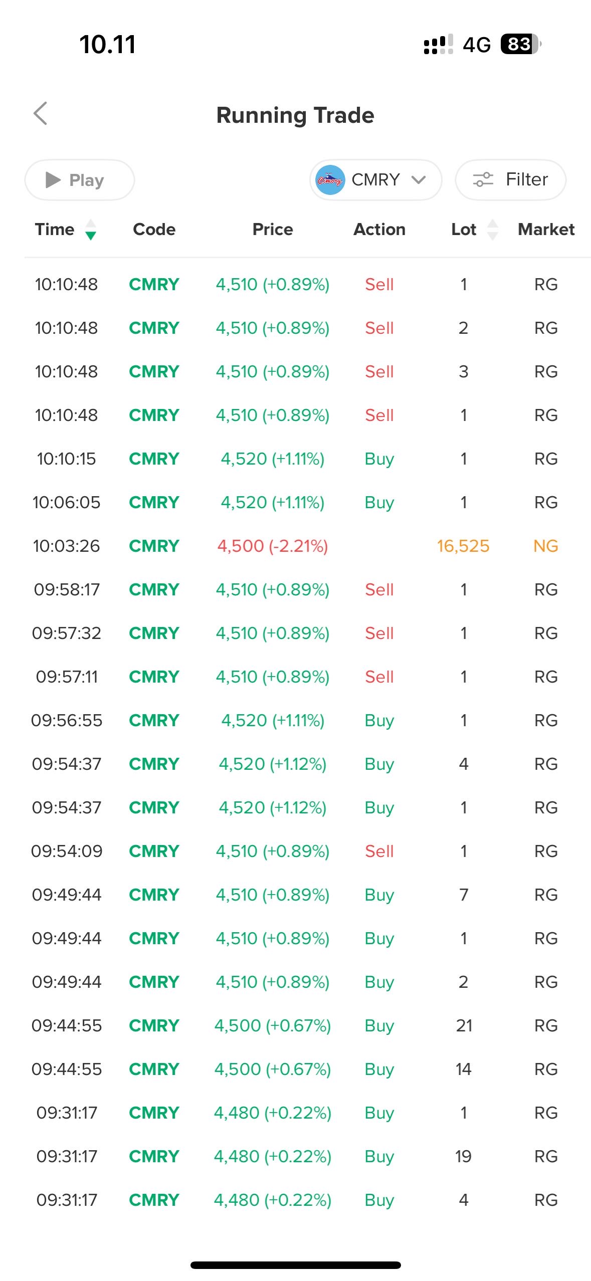 Aku pernah nyoba di $CMRY saat harga tiba-tiba jatuh beberapa hari lalu ke 4380. Sekarang? CMRY sempat ke 4770 lalu turun lagi ke 4650. Tapi yang tahu polanya dan masuk di 4380, mau turun pun porto tetap hijau.