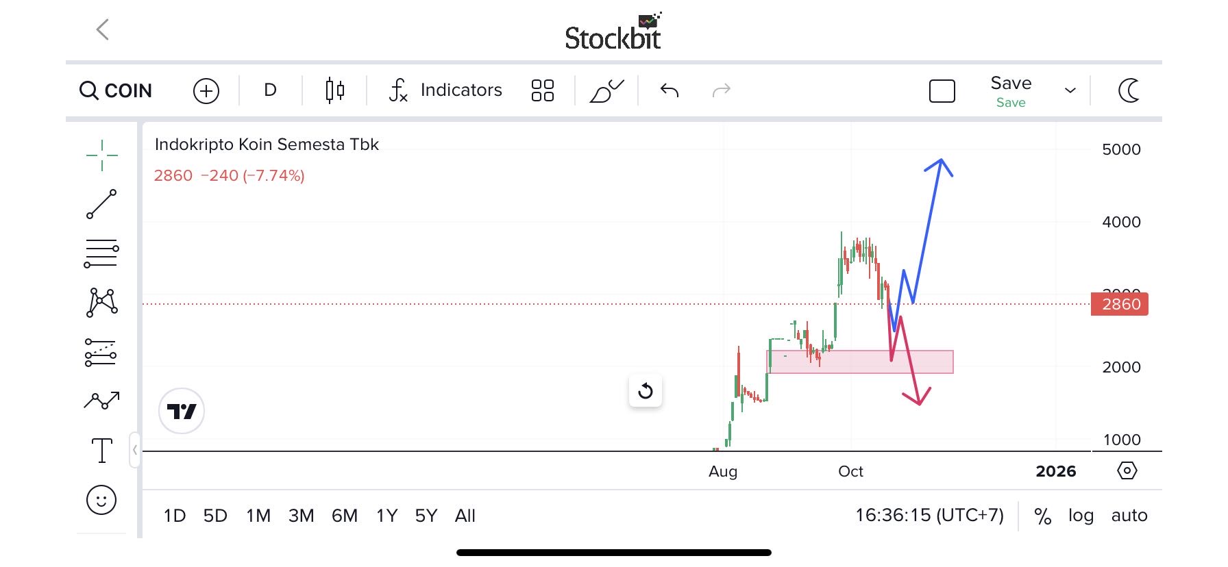 $COIN coin setelah turbulensi mungkin next step akan rebound. jika target 3600 lewat mgkn ke 5200 jika pengendali nya mau masuk MSCI standard caps. tp jika pengendali nya ckup di small caps Maka harga akan di jaga di angka 2300.