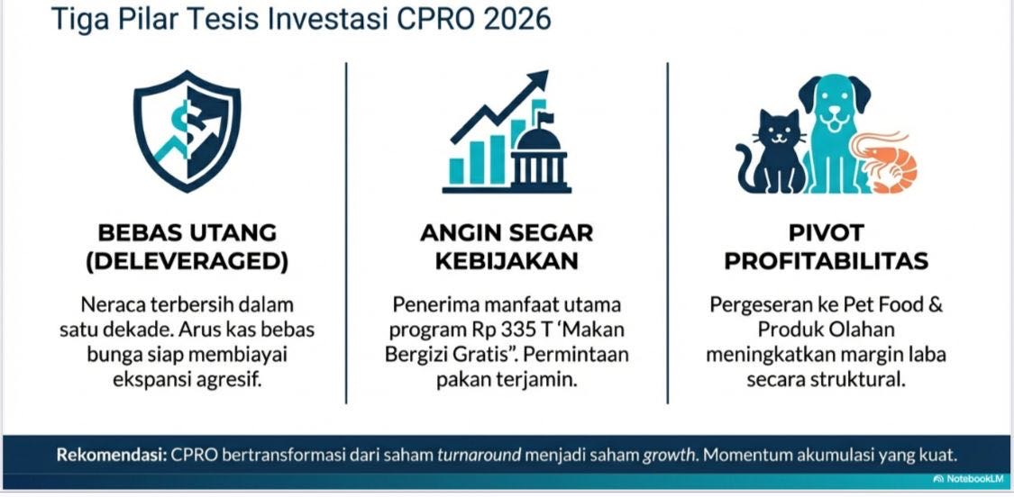 PT Central Proteina Prima Tbk (CPRO), didirikan pada 30 April 1980, adalah perusahaan agribisnis terintegrasi yang bergerak di bidang industri, peternakan, pertanian, perdagangan, dan jasa, dengan fokus utama pada produksi dan distribusi pakan udang, pakan ikan, pakan hewan peliharaan, bibit udang dan ikan, serta produk makanan berbasis boga bahari. CP Prima dikenal melalui berbagai merek unggulan di segmen pakan dan Aquatic Animal Healthcare, seperti probiotik, feed additive, dan disinfektan, yang didistribusikan secara nasional. Saat ini, perusahaan tengah fokus memperkuat rantai pasok akuakultur dari hulu ke hilir mulai dari ... Read More