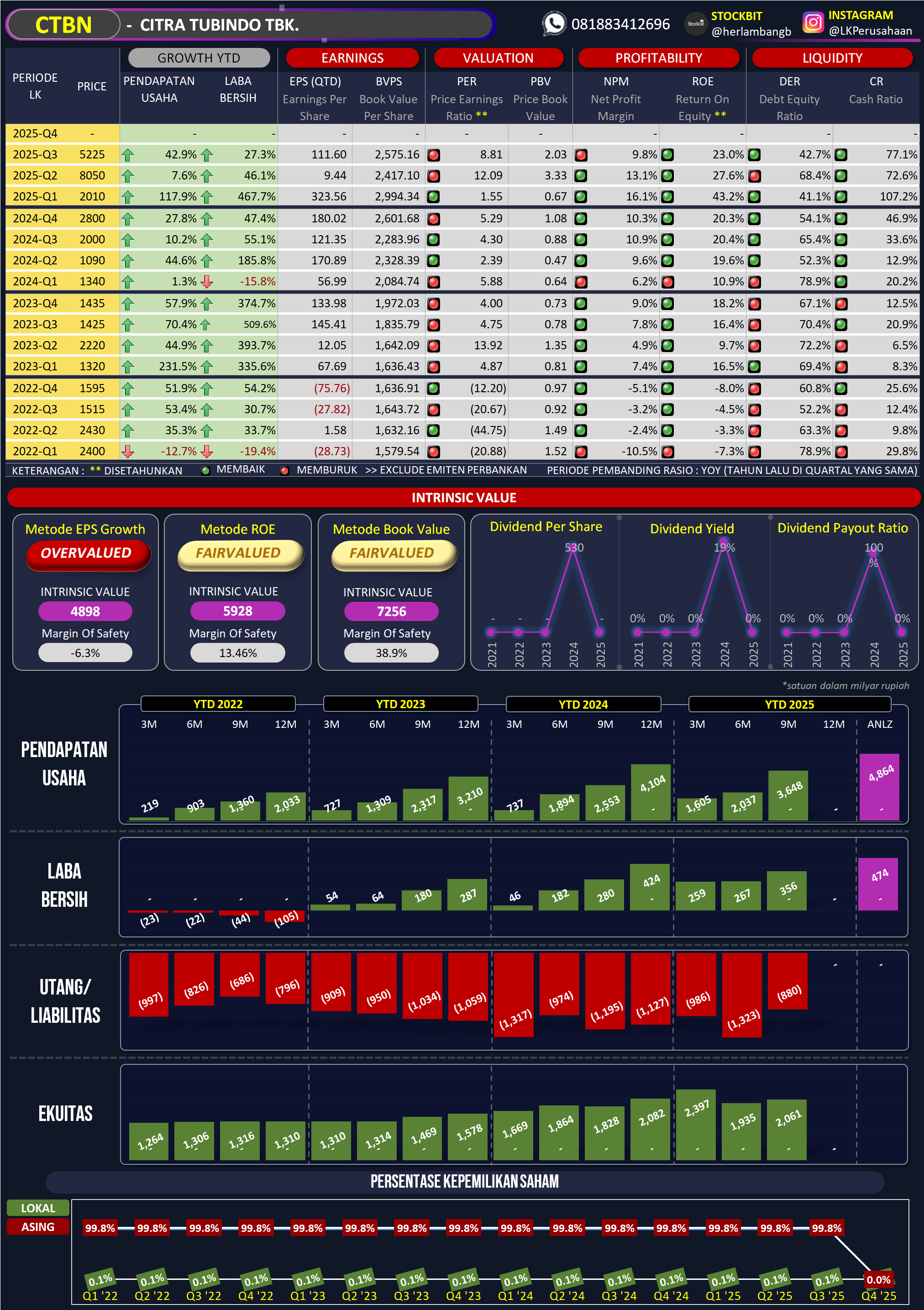 🔽 $CTBN gap down ke 4590 (-510 / -10%) dari 5100