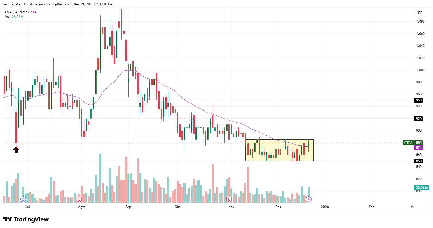 $CTRA per 18 Desember 2025 menunjukkan perubahan fase: