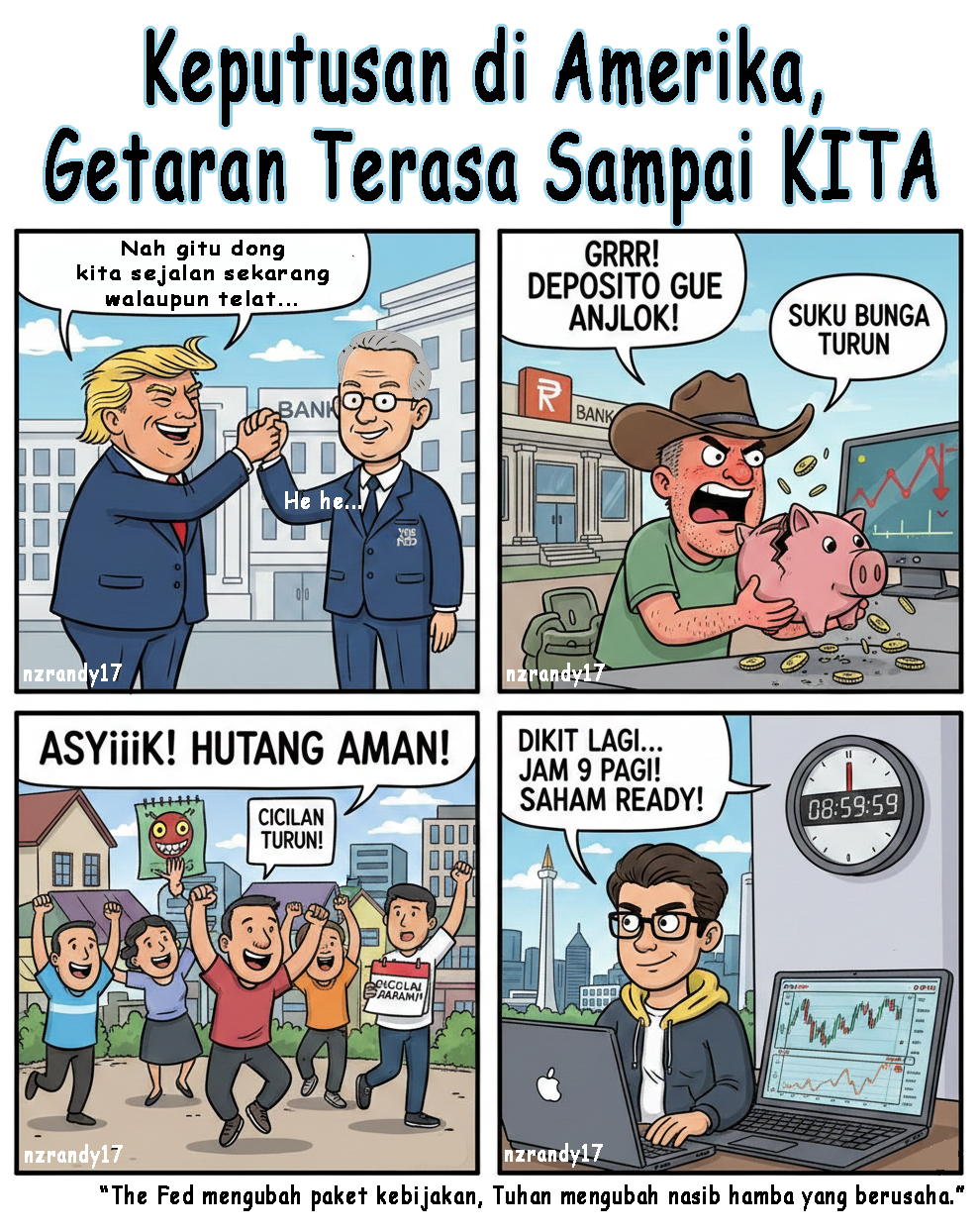 Di sisi lain, ada juga pihak yang kurang beruntung. Investor yang mengandalkan bunga deposito atau instrumen berbunga pendek akan melihat return-nya makin tipis. Lembaga keuangan, terutama yang hidup dari margin bunga, bisa tertekan karena pendapatan bunga menyempit. Pemegang dolar juga biasanya kurang senang karena nilai USD cenderung melemah setelah pemangkasan suku bunga. Jadi dalam setiap penurunan suku bunga The Fed, ada yang tepuk tangan, ada juga yang harap-harap cemas semua tergantung posisi mereka di peta finansial global.