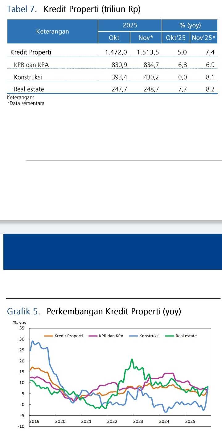 Kredit Properti juga pulih pertumbuhannya mencapai 7,4% yoy pada Nov, dibandingkan 5,0% yoy pada Okt.
