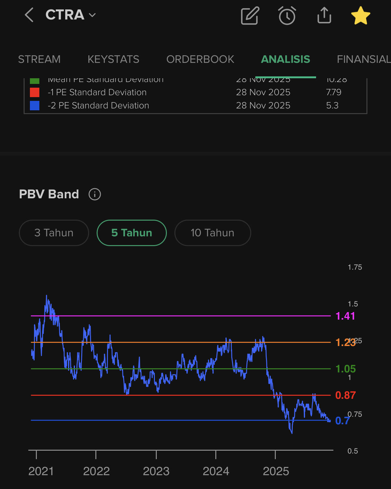 $CTRA ngga perlu dikulik-kulik macem-macem, tinggal liat history PBV nya aja 5 tahun kebelakang udah keliatan bgt murahnya š¤£š¤£š¤£š¤